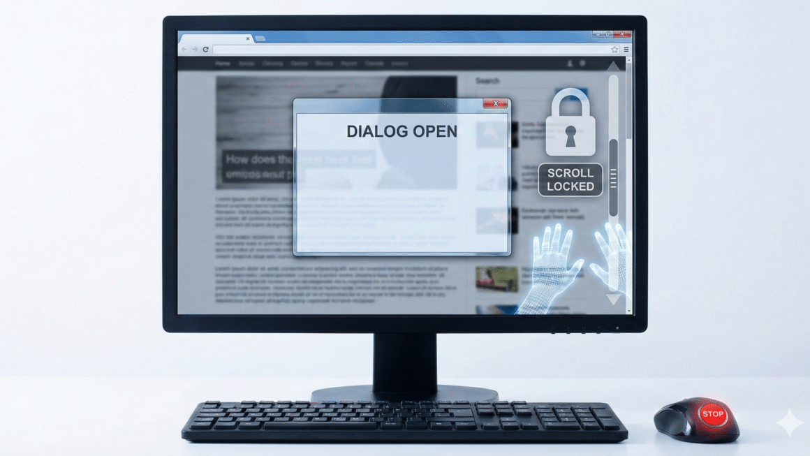 YES! Way back in 2019, I worked on “Prevent Page Scrolling When a Modal is Open” with Brad Wu about this exact thing. Apparently this was mere months before we got our hands on the true HTML <dialog> element. In any case, you can see the trouble with active scrolling when a “dialog” is open: