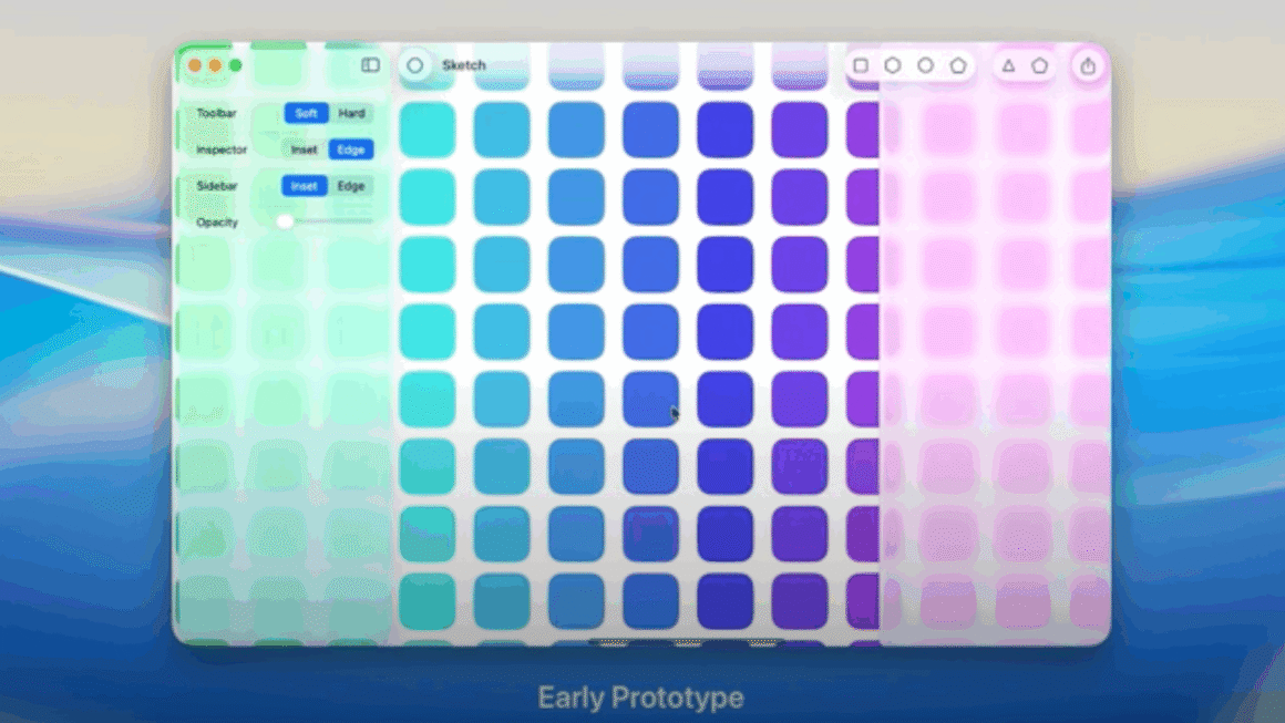 Early on in the process, we prototyped various approaches to the sidebar and Inspector, including floating options (the new default in Tahoe) and glass materials. Ultimately, we went custom here, with fixed sidebars that felt less distracting in the context of a canvas-based design tool.